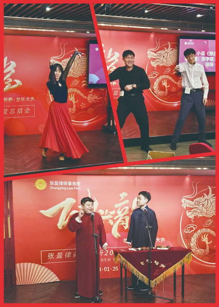 会议环节结束后,全体人员共享文艺盛宴。事务所总部及武清分所、滨海分所的律师们精心准备了舞蹈、歌曲、魔术表演、小品、相声等文艺节目,精彩纷呈,充分展示了律师们的才艺和精神风貌。在此阶段,还设计了激动人心的抽奖环节,由事务所老律师、合伙人、管委会成员代表等抽出“雨露均沾”“爱不释手”“至尊欧皇”等60余份奖项并送出丰厚的奖品。最后,与会人员共享饕餮盛宴,大家欢声笑语、其乐融融,互相预祝在2024年万事兴“龙”、梦想成真!